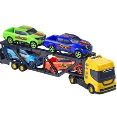 Caminhão Carreta Cegonheira Cegonha + 2 Carrinhos Brinquedo Infantil M