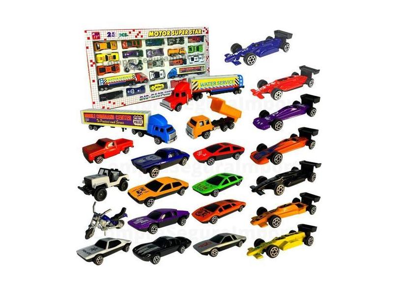 Carrinho De Brinquedo Miniatura De Metal Caixa Com 25 Carros - Csimpor