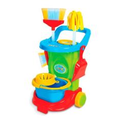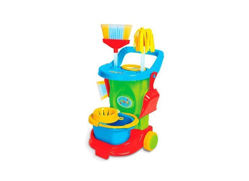 Carrinho De Limpeza Brinquedo + 3 Anos Verde 6 Acessórios Maral