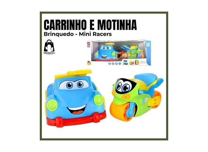Carrinho E Motinha Mini Racers Interativo Sons Brinquedo - Jp Brink