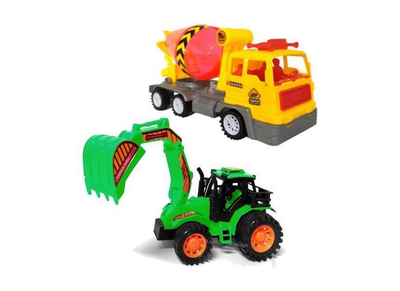 Carrinho Escavadeira com Caminhão Betoneira Brinquedo de Fricção - Fut