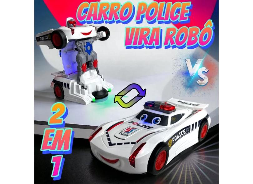 Carrinho Policial Brinquedo Infantil 2 em 1 Vira Robô Emite Luz E Som