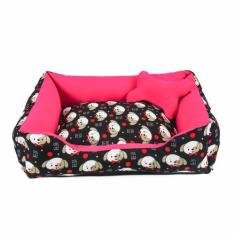 Cama para Cachorro Médio 60X50 Com Zíper Estampa Ossinho Cachorro Rosa