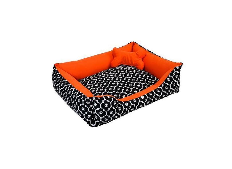 Cama Para Cachorro Médio 60X50 Com Zíper Estampa Ossinho Patinha Laran