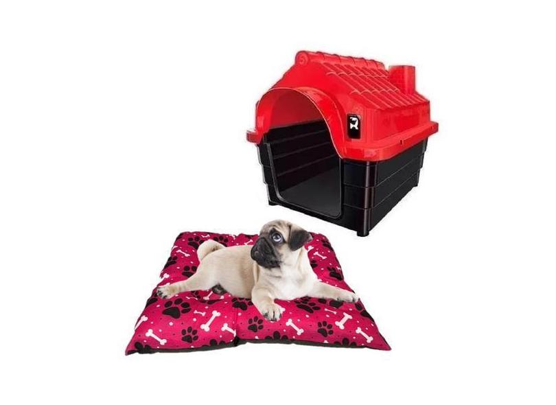 Cama Rosa Pet Quadrada Acolchoada + Casinha Dog Pet Shop N2 - Mecpet