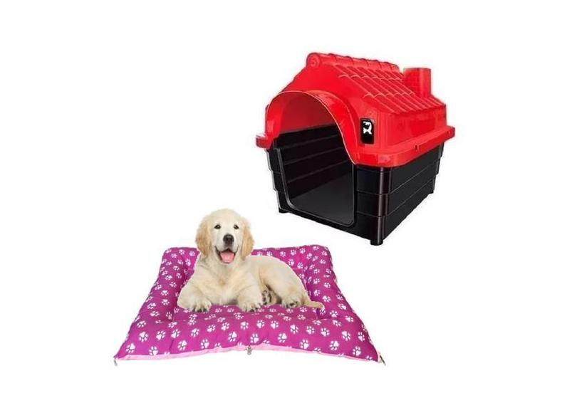 Kit Cama Rosa Colchonete Pet 50X40cm E Casinha Casa Pet N4 - Mecpet