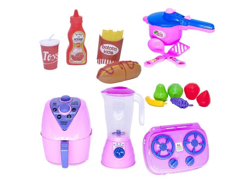 Brinquedo Cozinha Air Fryer Cesta Panela Frutas Pote 16p