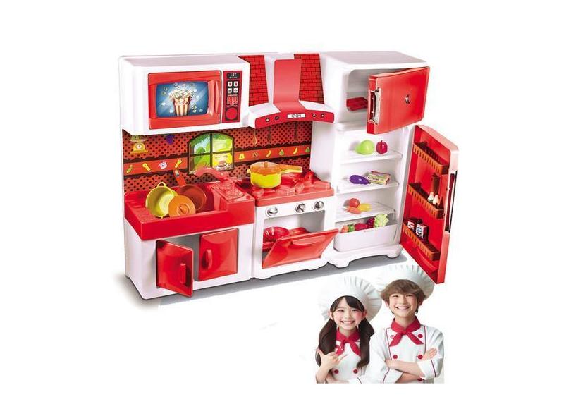 Cozinha Infantil Completa Geladeira Fogao 85cm Rosa Som Água - Lua de