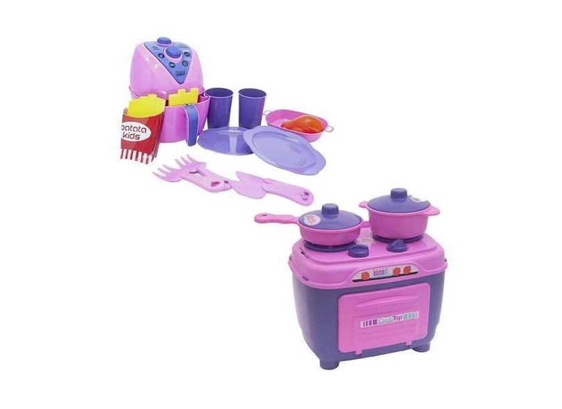 Cozinha Infantil Rosa Brinquedo Fogão Air Fryer Jantar 17Pç - Altimar