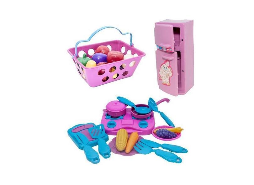 Cozinha Jantar Geladeira Brinquedo Criança Mercadinho 30Pç - Master To