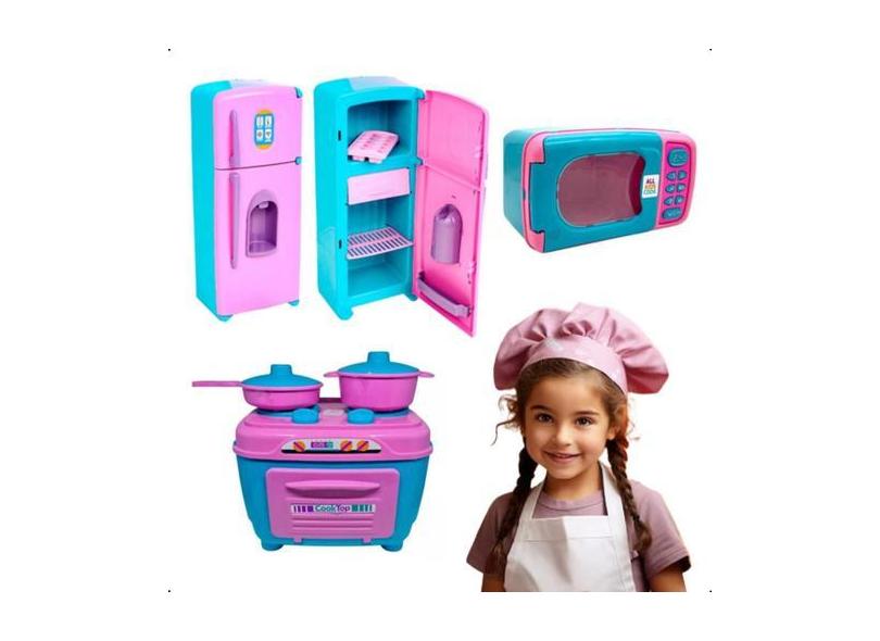 Kit Cozinha Infantil Brinquedo C/ Geladeira Microondas Fogão - Zuca To