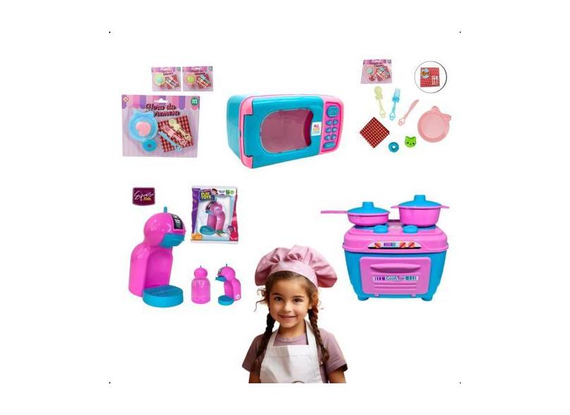 Kit Cozinha Infantil Brinquedo Fogão Cafeteira Microndas - Zuca Toys