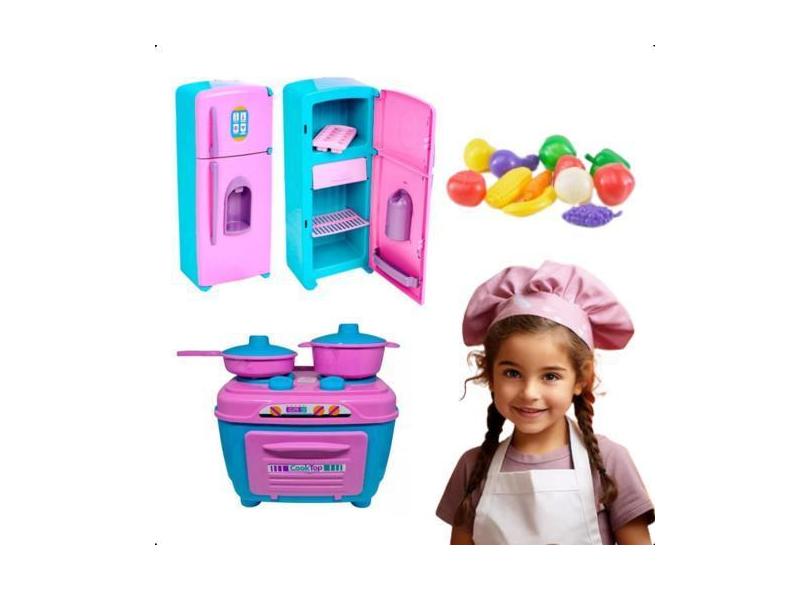 Kit Cozinha Infantil Brinquedo Geladeira Fogão C/ Legumes - Zuca Toys