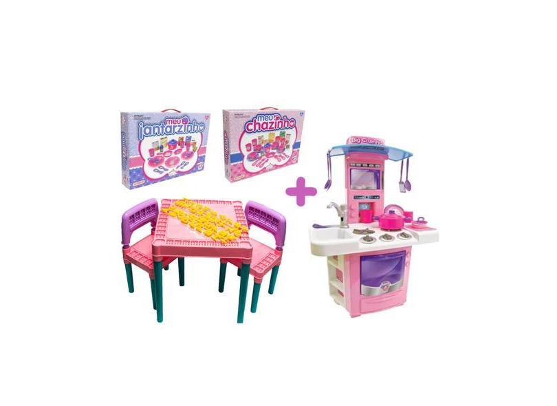 Kit Cozinha Infantil Pia Fogão Forno + Mesa + Chá E Jantar - Big Star