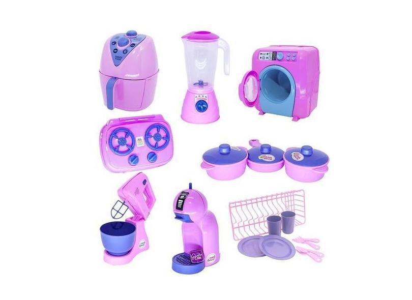 Kit Cozinha Infantil Rosa Air Fryer Panela Fogão Louça 19Pç - Altimar