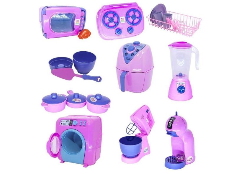 Kit cozinha infantil rosa air fryer panela fogão louça 25pç