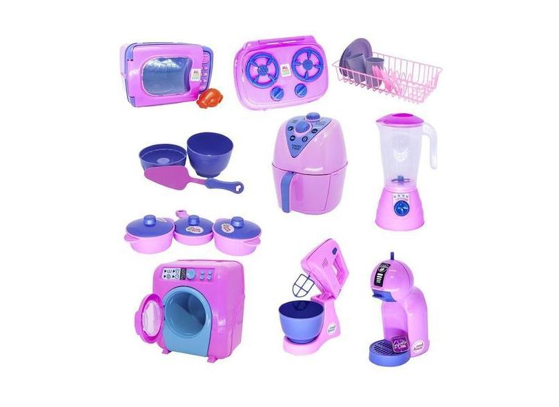 Kit Cozinha Infantil Rosa Air Fryer Panela Fogão Louça 25Pç - Altimar