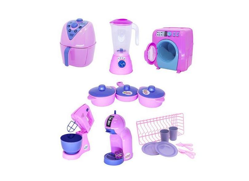 Kit Cozinha Infantil Rosa Air Fryer Panela Máquina Lavar 18P - Altimar