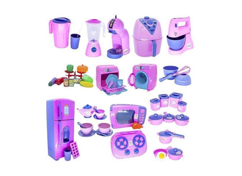 Kit Cozinha Infantil Rosa Fogão Air Fryer Xícara Jarra 51Pç - Altimar