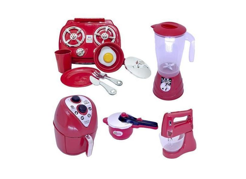 Kit Cozinha Vermelho Brinquedo Infantil Air Fryer Fogão 10Pç - Altimar