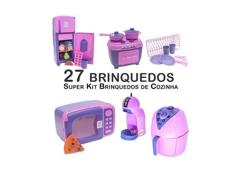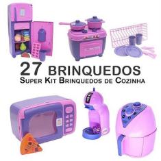 Kit Infantil Cozinha Geladeira Fogão Microondas Panela 27P - Zuca Toys