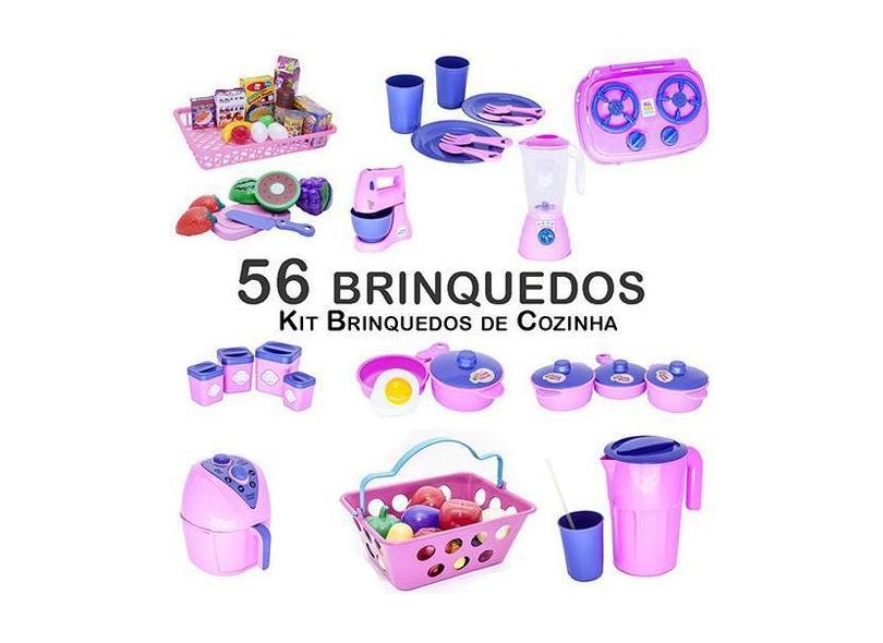 Kit Infantil Panela Batedeira Fogão Prato Mercado Fruta 56Pç - Altimar