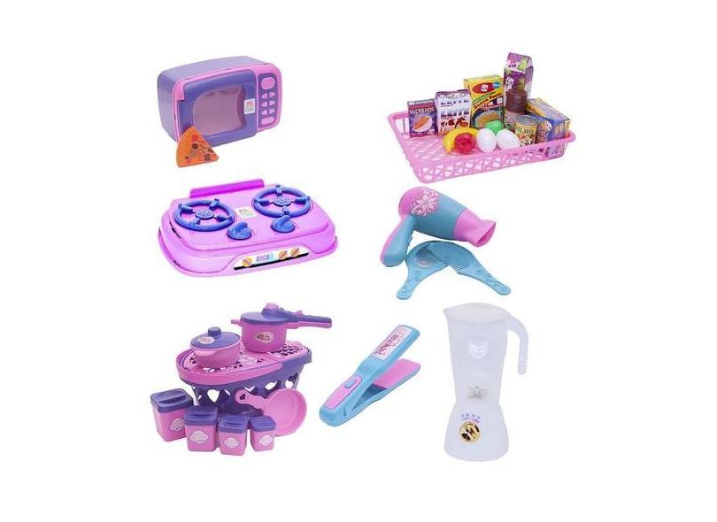 Menina Cozinha Infantil Eletro Panelas Mercado 29 Peças - Altimar