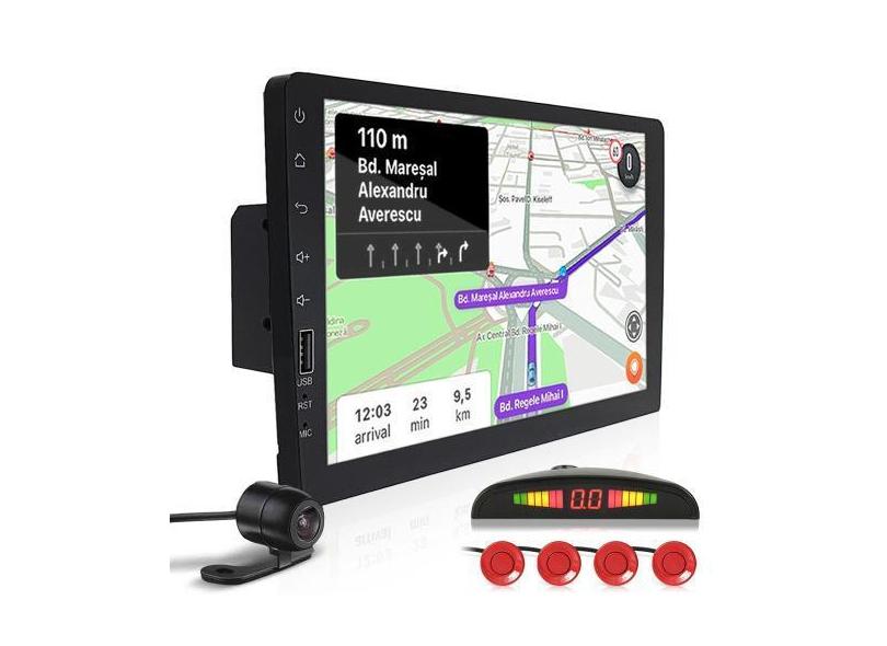 Kit Multimídia 1 Din 9 Polegadas + Câmera Ré + Sensor Ré Vermelho Pris