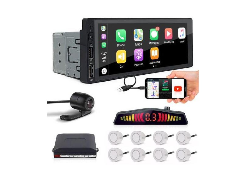 Kit Multimídia 1 Din + Câmera Ré + Sensor 8 Pontos Branco Fiat Grand S