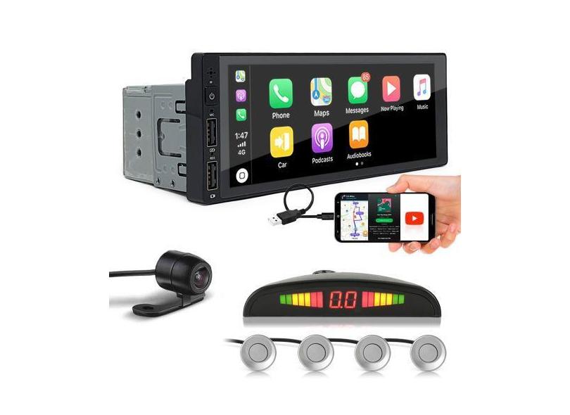 Kit Multimídia 1 Din + Câmera Ré + Sensor Ré Prata Nissan Kicks 2016 2