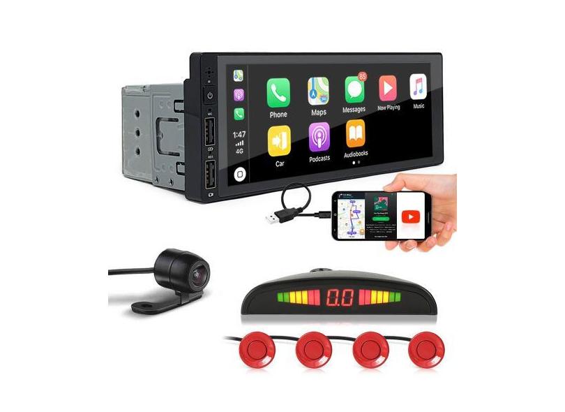 Kit Multimídia 1 Din + Câmera Ré + Sensor Ré Vermelho Suzuki Swift 199