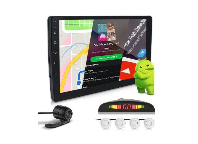 Kit Multimídia 9 Polegadas Android + Câmera Ré + Sensor Ré Branco Astr
