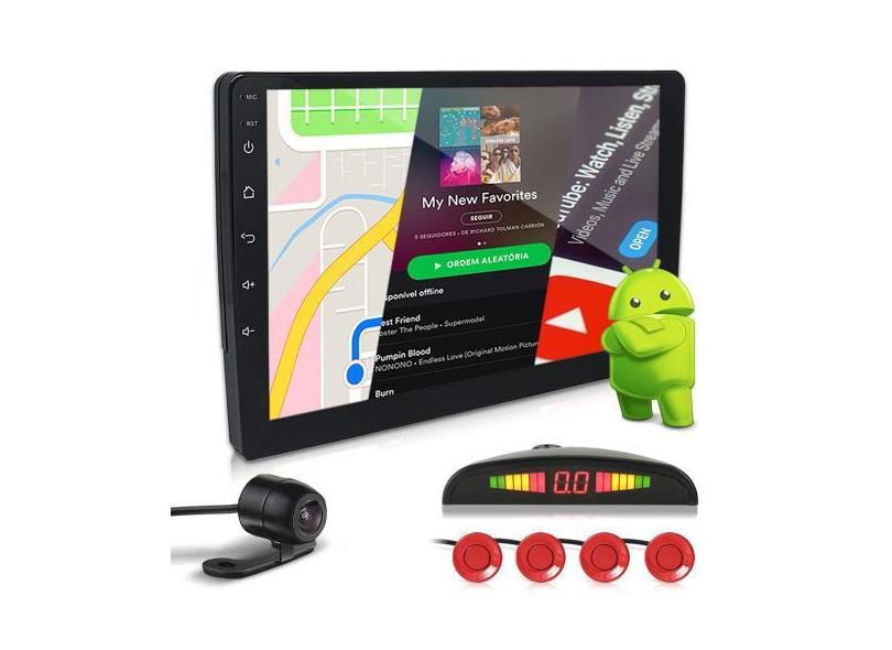Kit Multimídia 9 Polegadas Android + Câmera Ré + Sensor Ré Vermelho Ce