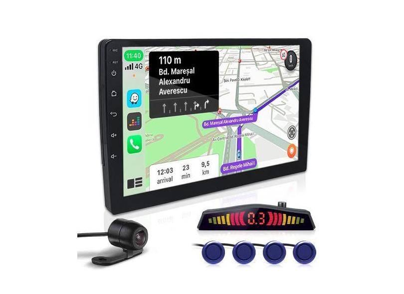 Kit Multimídia 9 Polegadas + Câmera Ré + Sensor Ré Azul Nissan March 2