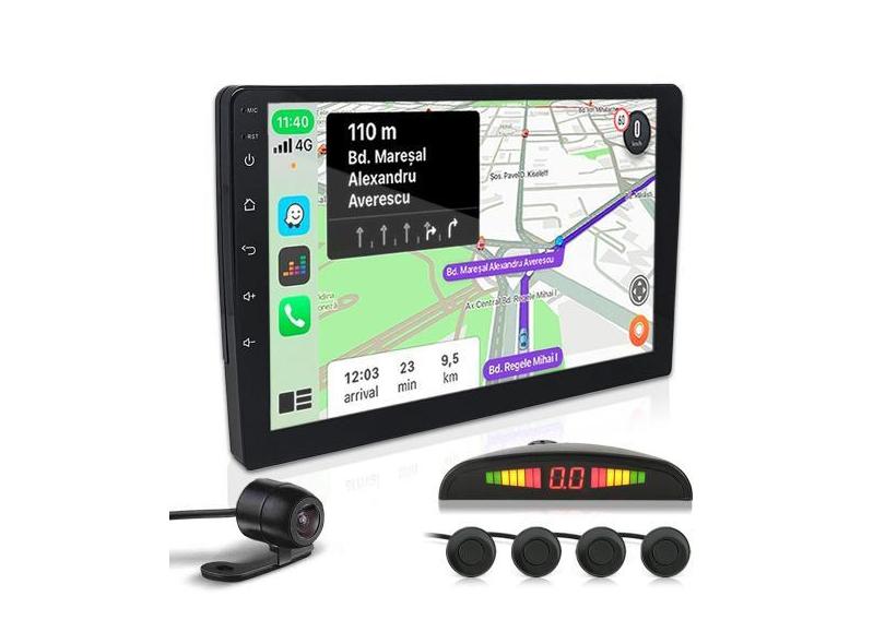 Kit Multimídia 9 Polegadas + Câmera Ré + Sensor Ré Preto Peugeot Hogga