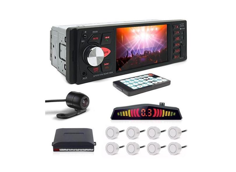 Kit Rádio C/ Tela 1 Din + Câmera Ré + Sensor 8 Pontos Branco Toyota Hi