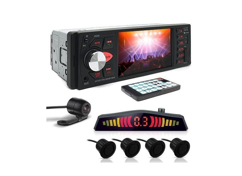 Kit Rádio C/ Tela + Câmera Ré + Sensor Ré Preto Fosco Emborrachado Hyu