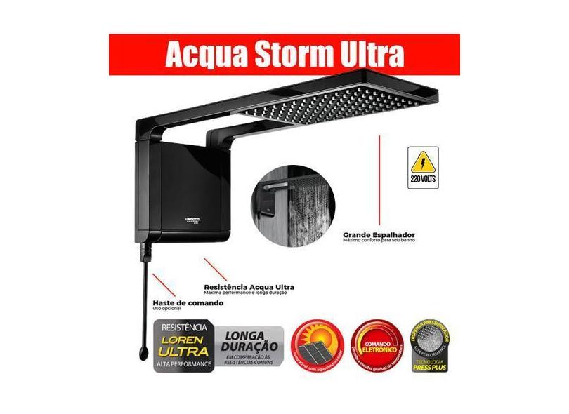 Chuveiro Quadrado Lorenzetti Preto Acqua Storm Ultra 220V 7800W
