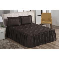 Cobre Leito Colcha Casal Padrão Bordada Margadona 3 Peças Cor Tabaco