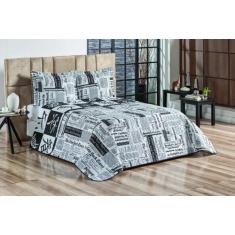 Edredon E Cobre Leito Dupla Face Casal Queen 03 Peças Estampa Jornal