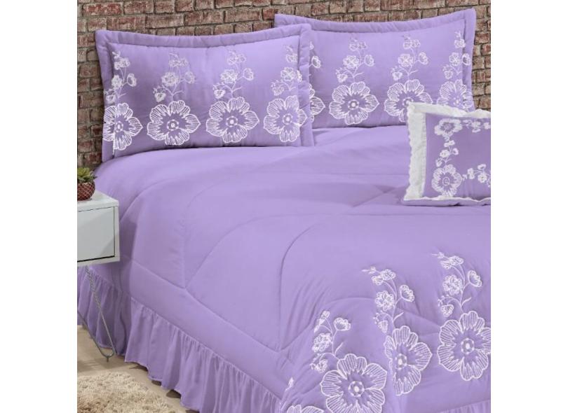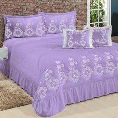 Kit Cobre Leito Casal King Amore 07 Peças Bordadas - Lilás