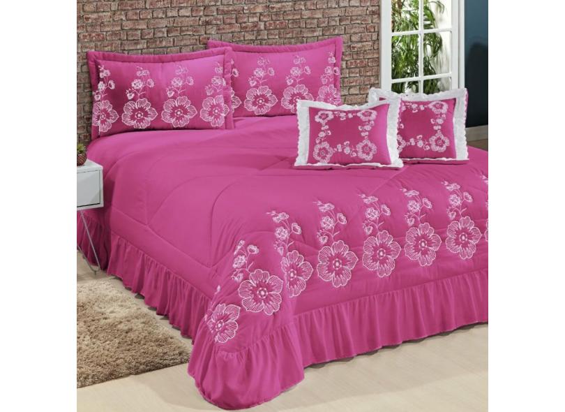 Kit Cobre Leito Casal Super King Amore 07 Peças Bordadas - Pink