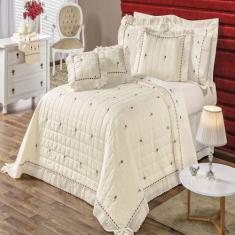 Kit Enxoval Queen Bordado 200 Fios Felicitá Marfim 9 Peças Vilela Enxovais