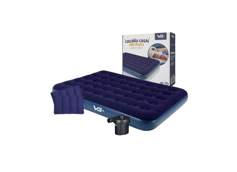 Colchão Casal Inflável + 2 Travesseiros + Bomba Elétrica Vg Plus, Azul