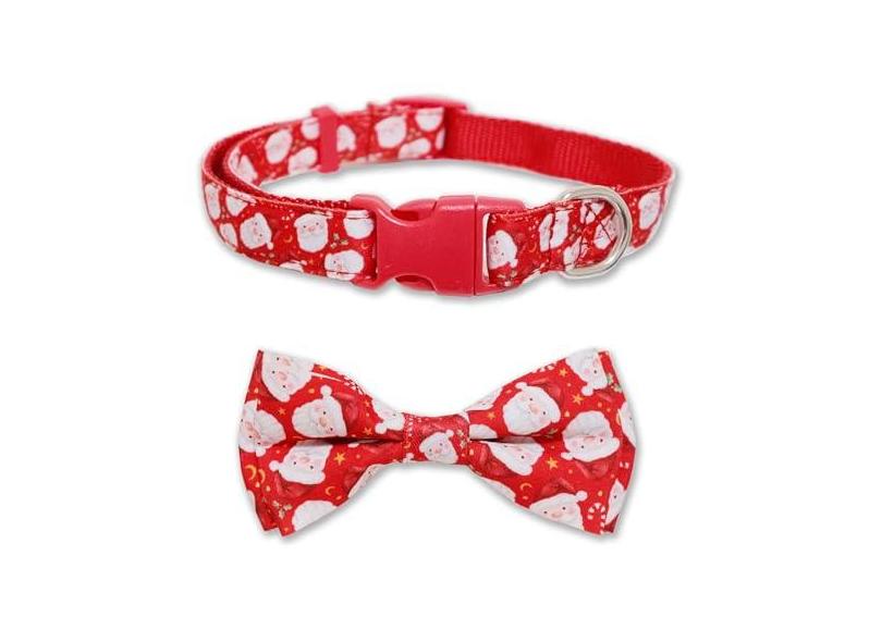 Coleira de gravata borboleta para cães de Natal, coleira de Papai Noel para filhotes de animais de estimação grandes, médios e pequenos (médio-(32-50,8 cm) pescoço * 1,9 cm de largura, Papai Noel