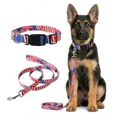 Coleira para cães com bandeira dos EUA - Coleira ajustável para animais de estimação patriótica com fivela durável e design confortável (tamanho M)