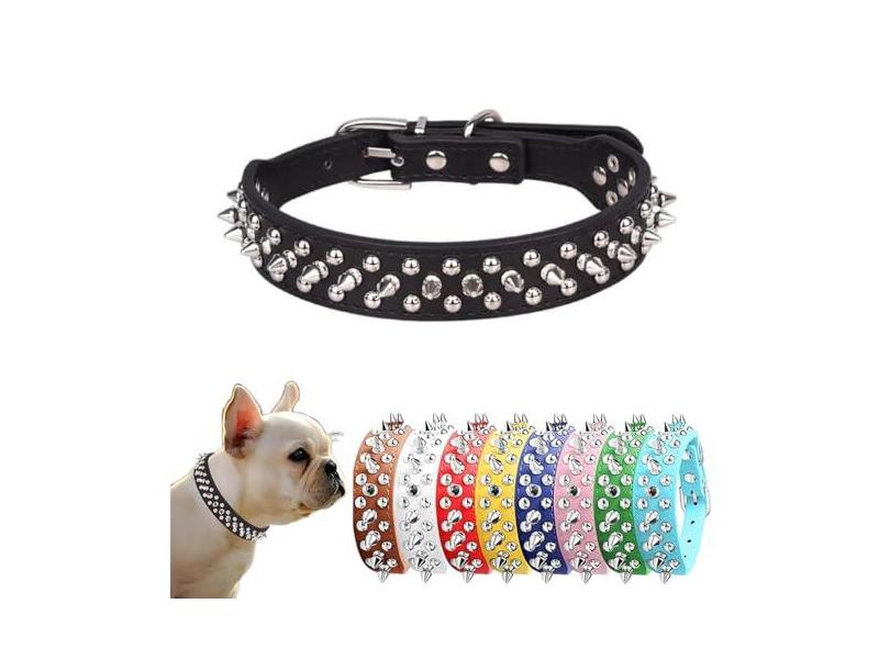 Coleiras de cachorro com pontas, alça de pescoço de couro punk rebite coleira para animais de estimação cravejada para cães pequenos, médios e grandes