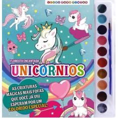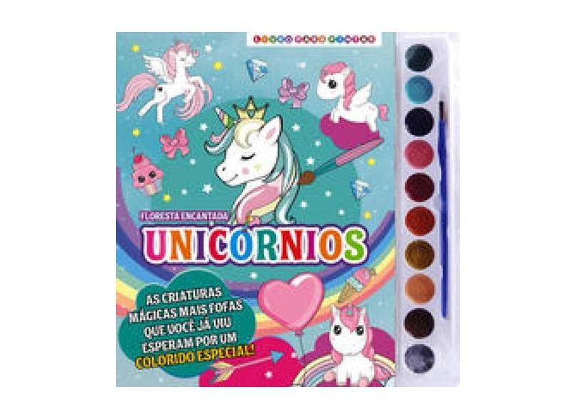 Livro para Colorir Floresta Encantada Unicórnios com Aquarela