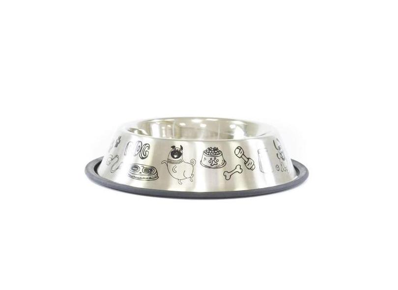 Comedouro Cães E Gatos Inox Decorado Antiderrapante 640ml - Pet Injet
