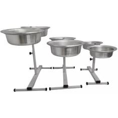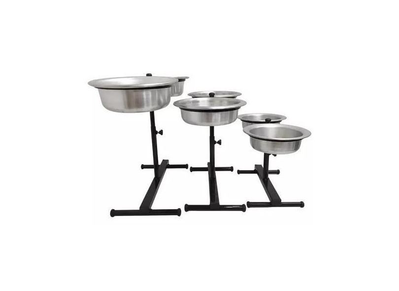 Comedouro Duplo Regulável Ajustável Alumínio Cães Ração Água 1,5L - O